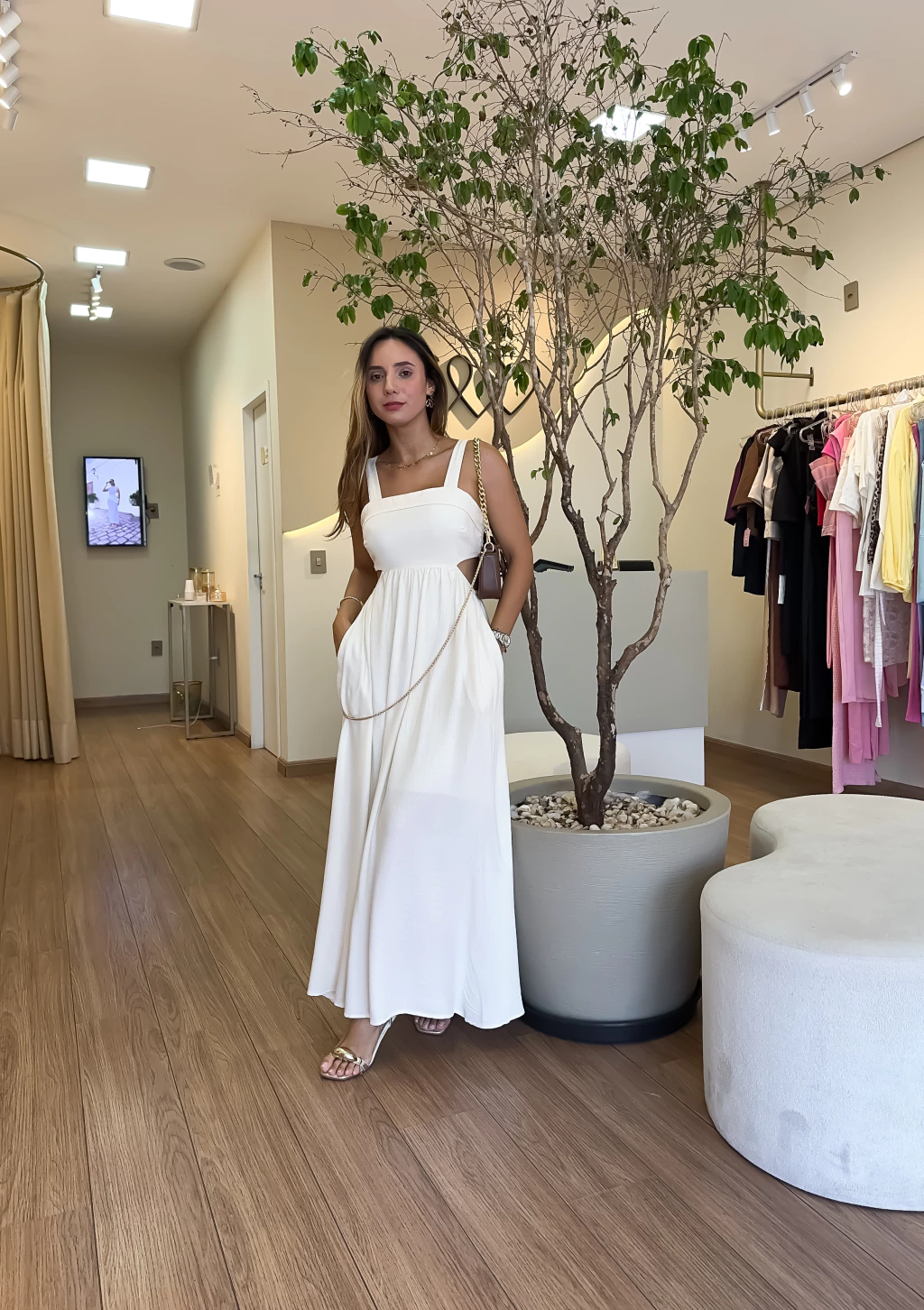 Vestido longo frente única no tecido viscolinho, caimento perfeito, fluído e muito confortável. Modelo com busto reto, alças largas, recortes na lateral, elástico na cintura e amarração nas costas.