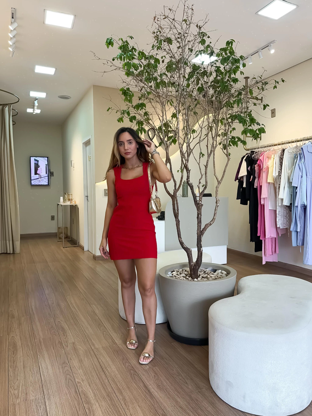 Vestido curto tubinho, com modelagem ajustada ao corpo, ele possui um decote quadrado na frente e um charmoso detalhe de amarração nas costas, que adiciona um toque único ao design. Produzido em tecido estruturado de alta qualidade, leve e confortável, o vestido é perfeito para diversas ocasiões, seja para eventos sociais ou para um look mais casual e estiloso. O corte acinturado valoriza a silhueta, e as alças largas oferecem conforto e segurança